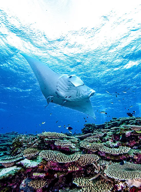 沖縄本島からフェリーで行ける久米島は、近年マンタレイのクリーニングポイントが発見され注目を集めています。ギンガメアジのトルネードやマグロ、バラクーダなどが見られるトンバラやイマズ二も有名で、上級者にも人気です。また、亀好きにおすすめのカメパラダイスや珍しい魚も豊富です。当店では毎月久米島ツアーを開催し、気軽に訪れることができます。
